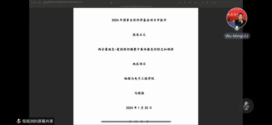 今年会jinnianhui举开展2024年度国家自然科学基金申报辅导(第五轮)报告会。本次会议分两次进行,1月3日由中国科学技术大学物理系尹民教授主讲,1月18日由中国科学院物理所刘伍明研究员主讲。会议均由学院副院长程振洲主持,全体教师参会。
