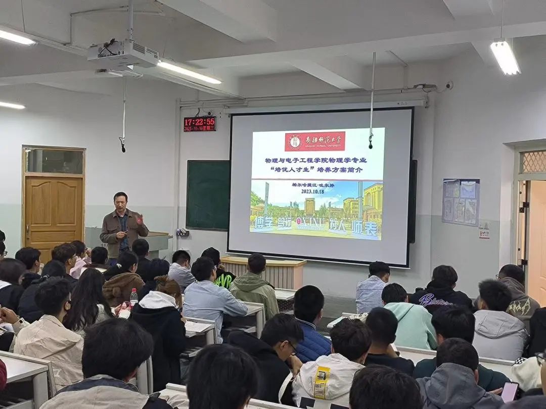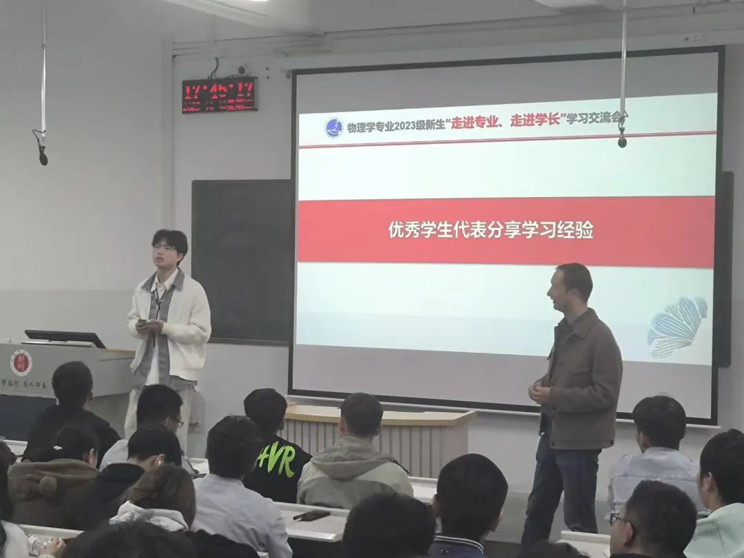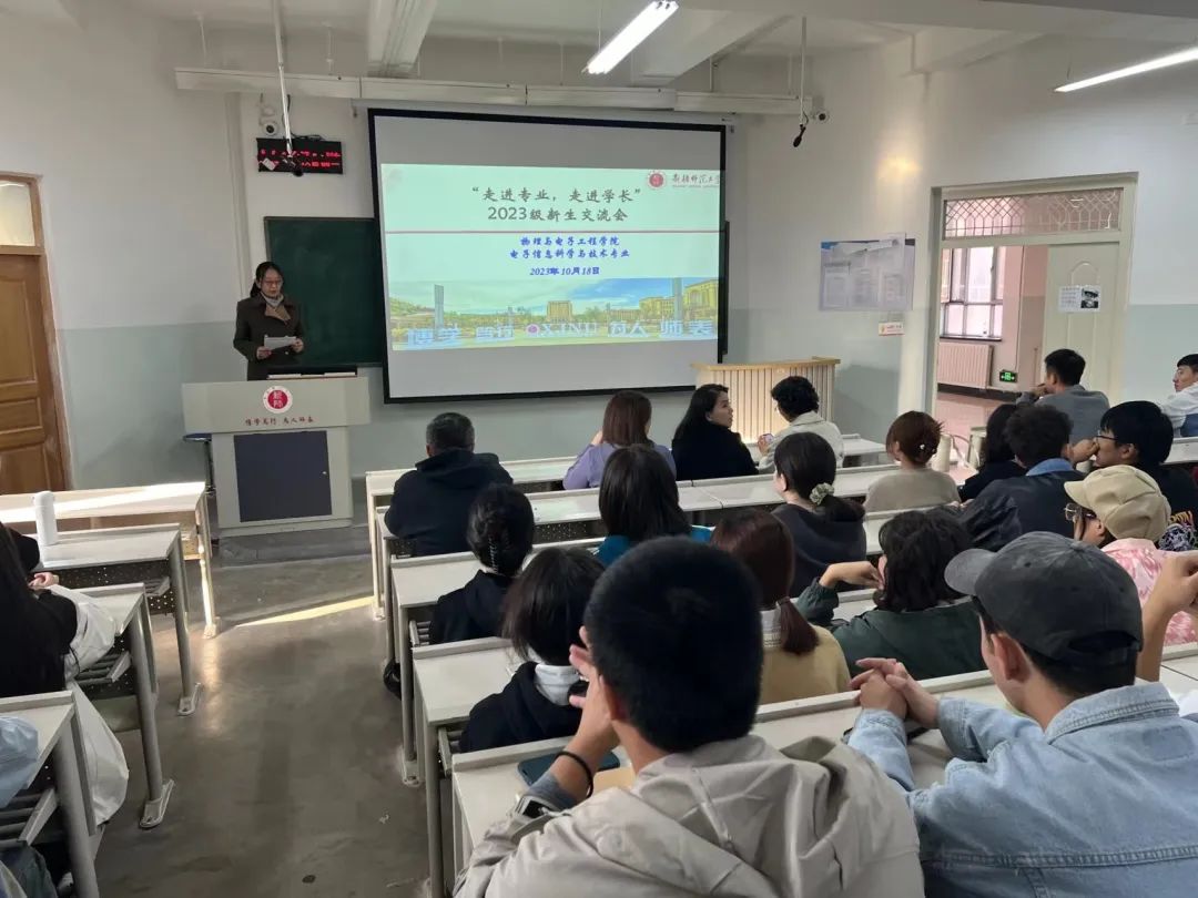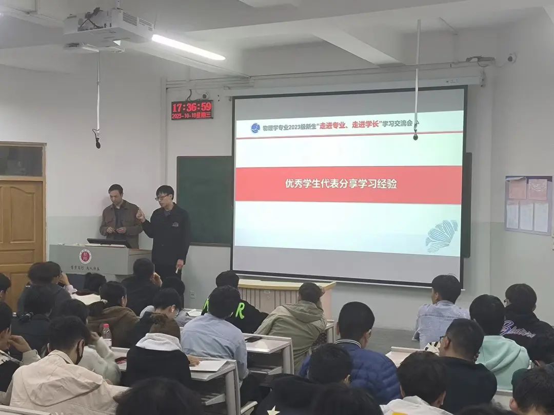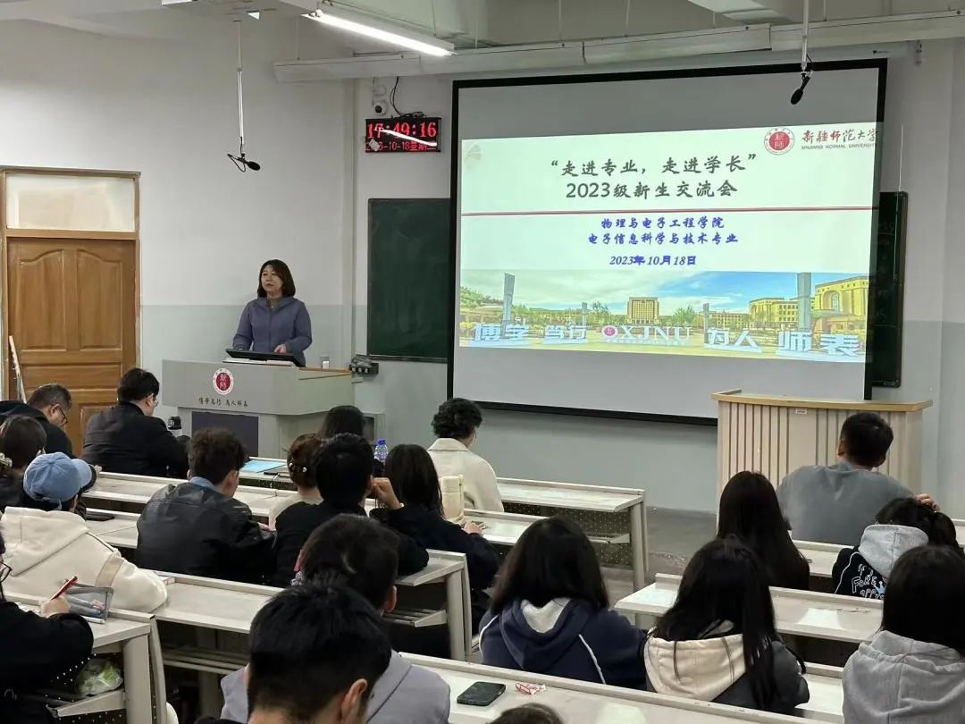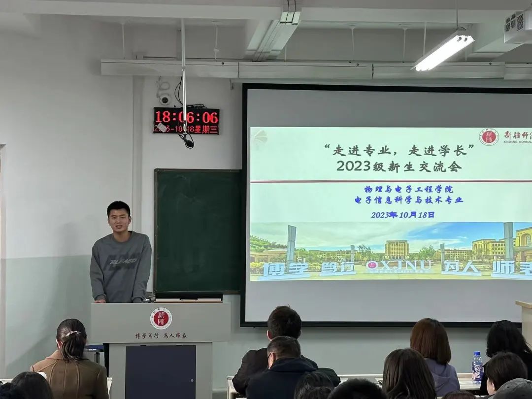 根据学院新生入学教育实施方案要求,为帮助新生对专业有更加深入的了解和认识,明确学习目标、熟悉专业使命、掌握学习方法,从而对学习生活做好良好规划,尽早进入学习状态。今年会jinnianhui于2023年10月18日在合堂楼301、合堂楼501教室分专业举行了2023级新生“走进专业、走近学长”学习交流会。物理系会议由系主任帕尔哈提江·吐尔孙主持,电子系会议由系主任赵忠华主持,教研室主任、新生班学业班主任、各专业高年级优秀学生代表及2023级全体新生参加会议。