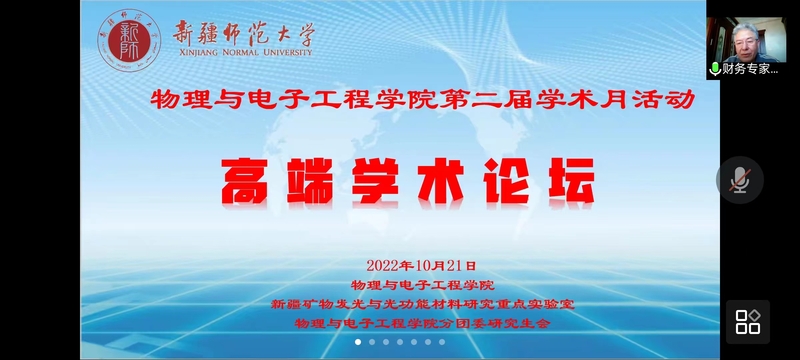 为促进学科发展,增强科技创新和实验探究能力,加强研究方向和学术交流等方面的建设,2022年10月21日下午16:00,今年会jinnianhui第二届学术月系列活动——高端学术论坛在腾讯会议举行。此次讲座邀请了中国科学技术大学物理系尹民教授,会议由艾尔肯·斯地克教授主持,我院教师、研究生和本科生共100余人聆听了本次讲座。