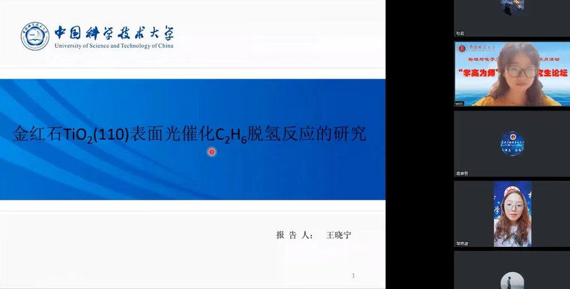 杨振东博士以“学科教育研究生如何走向学科教育研究者—基于物理教育研究的体悟”为主题,王晓宁博士以“金红石TiO2(110)表面光催化C2H6脱氢反应的研究”为主题,牛素俭博士以“基于三阶准相位匹配的光源制备”为主题,程静博士以“磁性超原子[Fe6S8(CN)6]5-的二维组装单层及其磁学性能的研究”主题,热孜宛古丽·延塔克博士以“Eu2+和Li+共掺杂青色铝硅酸盐荧光粉的开发及发光性能研究”为主题,汇报从教育研究到科学研究,从自己的近期研究工作到学习经验分享,内容丰富多彩,学生积极发言,论坛取得圆满成功。