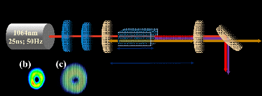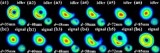 基于光学性能优良的KTiOAsO4(KTA)晶体,结合闲频光单谐振光参量振荡器的独特优势,搭建稳定紧凑的闲频光单谐振光参量振荡器;采用波长为1064nm的一阶涡旋光泵浦KTA光学涡旋参量振荡器,通过合理扩展腔长,控制泵浦光、信号光和闲频光之间的空间耦合因子,导致腔内一阶涡旋光与高斯光相干叠加,进而产生轨道角动量在0-1之间连续可调谐的非整数涡旋光的产生,为非整数涡旋光的产生提供了一种简单有效的方式。