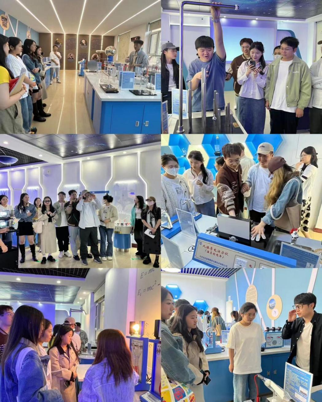 在光学与电磁学科普实验室,在物电学院研究生党支部成员的讲解中,大家共同体验了“视觉暂留”“普适摆”等物理知识的魅力。