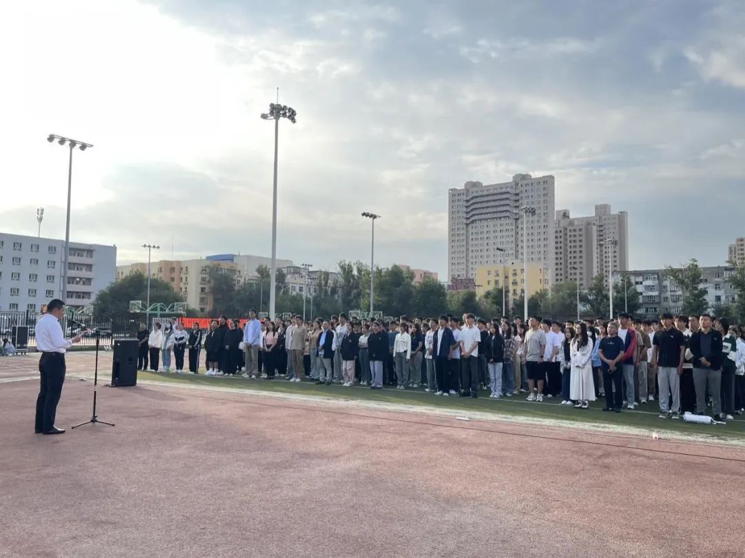 9月3日是中国人民抗日战争暨世界反法西斯战争胜利 79周年,为缅怀革命先烈,铭记抗战历史,弘扬伟大抗战精神,全面加强新时代爱国主义教育,激发广大学生的爱国之心、报国之情、强国之志,9月2日,我院举行“国旗下的开学第一课”暨“铭记历史,缅怀先烈”主题升旗仪式,学院领导、辅导员、2024级全体班主任、青葵助励小导师、分团委、学生会和2024级全体同学共计400余人参加活动,活动由分团委书记木力扎提·马合木提主持。