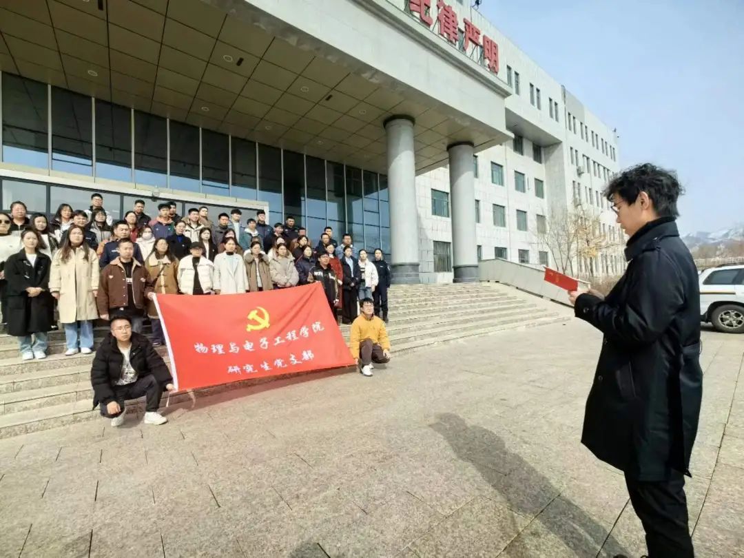 活动伊始,刘振国同志带领全体党员学习了习近平总书记近期重要讲话和两会精神,接着由研究生党支部委员杨天奇同志带领全体成员诵读党章“第十章-党和共产主义青年团的关系”内容,并重温了入党誓词。