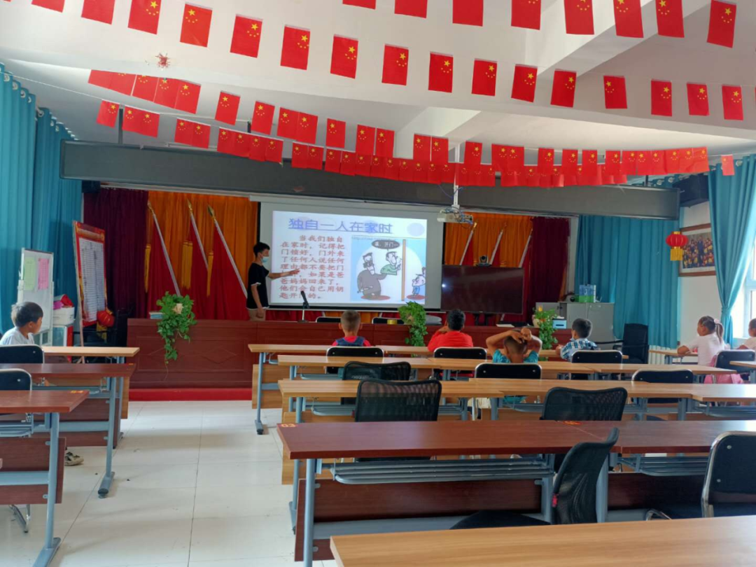 哈斯尔别克·热合曼同学为孩子们讲解安全知识