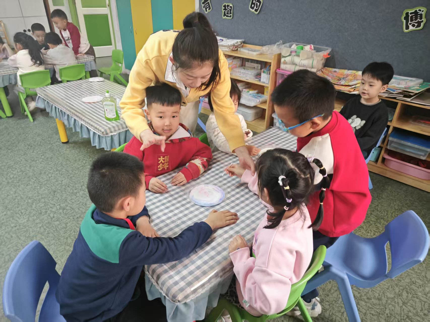 党员同志带领小朋友完成实验
