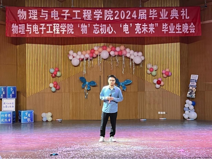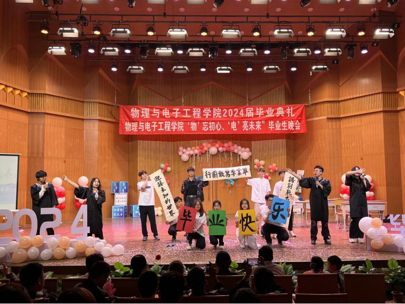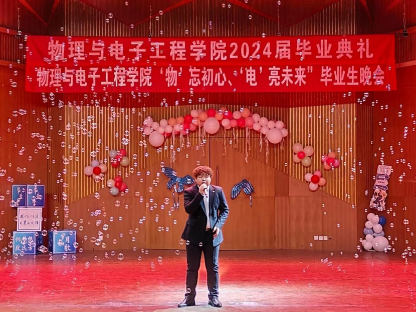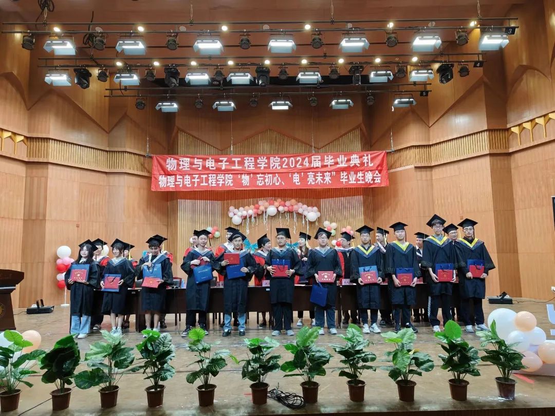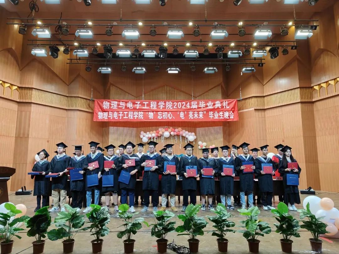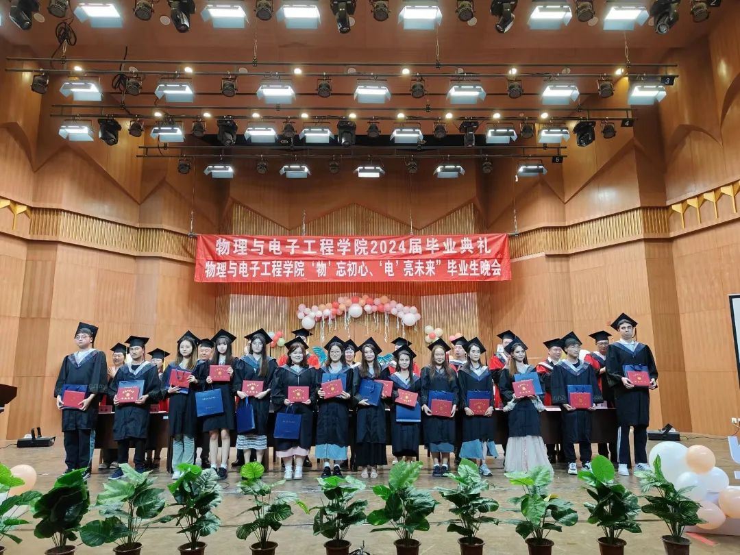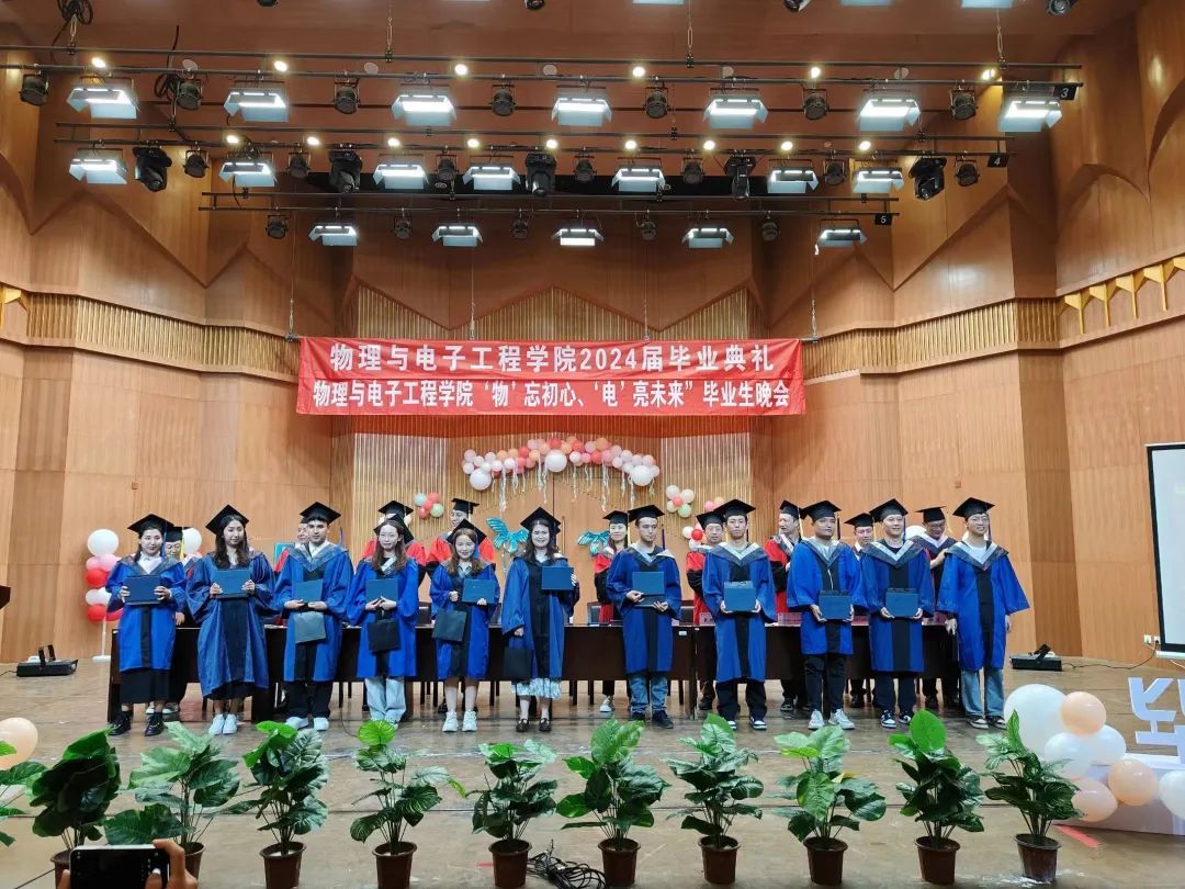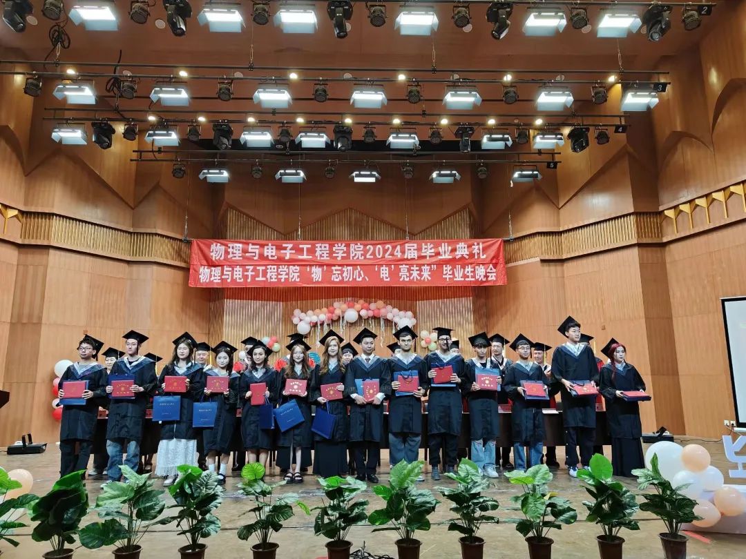 蕙风如薰,花开半夏,骊歌轻起,毕业又至。2024年5月31日晚,今年会jinnianhui2024届毕业典礼暨“‘物’忘初心、‘电’亮未来”毕业生晚会在昆仑校区音乐厅举行。学院领导班子、学院学术委员会成员、毕业班班主任及辅导员、2024届全体毕业生和各年级学生代表参加典礼。学院党委副书记、纪委书记买星老师主持本次会议。