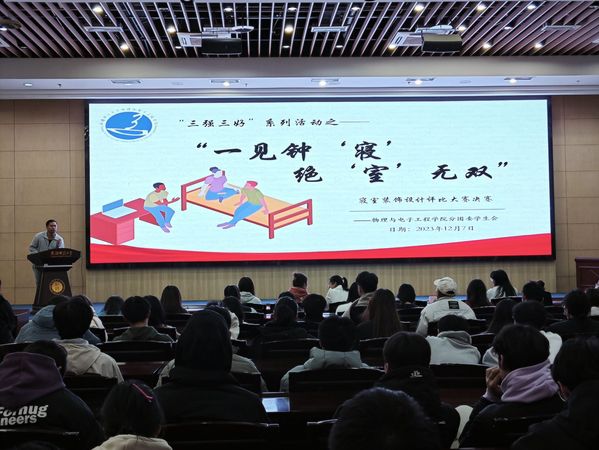 为促进我院学风建设,发挥社区育人功效,进一步深化我院“三强班级”“三好宿舍”建设达标与评优活动,今年会jinnianhui于2023年12月8日晚在国际教育大厦一楼组织召开第四届“一见钟‘寝’,绝‘室’无双”寝室装饰设计评比大赛。学院党委副书记、纪委书记买星,学工办主任徐丽屏,辅导员木力扎提·马合木提、宁静、郑叶,分团委副书记赵燕燕担任评委,2023级200余名同学共同参与此次活动。