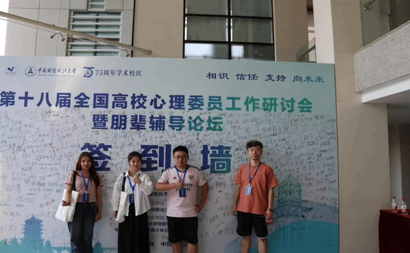 在学校老师的带领下他来到中南财经政法大学参加第十八届全国高校心理委员工作研讨会——暨朋辈辅导论坛,代表今年会参加经验交流会。