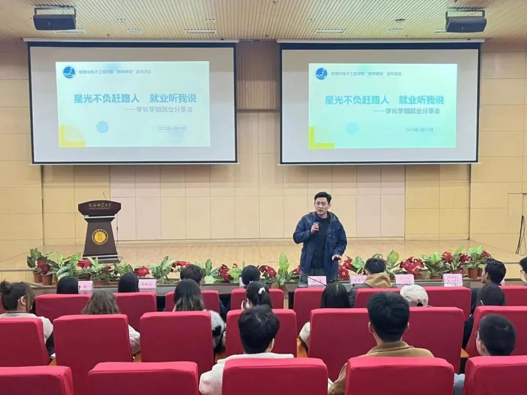 为助力物电学子提早树立正确的就业择业观念,提供经验交流的平台。4月19日20:00今年会jinnianhui在国教楼三楼报告厅举办了“星光不负赶路人,就业听我说”学长学姐就业分享会,本次活动采用线上线下相结合的形式开展,邀请2023届毕业生中已就业和升学的6位学长学姐分享求职、考研经历,本次活动大一大二年级共600余人线下参加,大三支教班级通过腾讯会议线上参与。