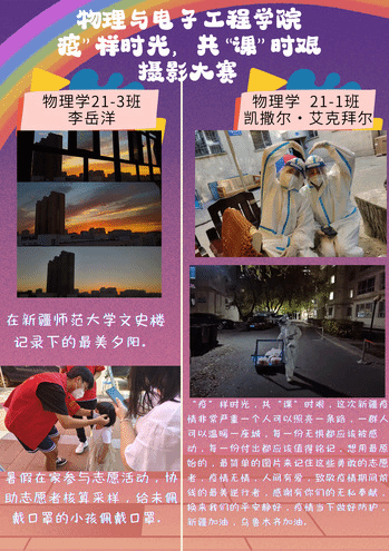 本次活动由学院分团委学生会发起,首先制作了宣传海报在学院班长群和微信朋友圈积极宣传活动,营造了良好氛围。活动一经发出,受到很多同学的热情参与。有的同学用照片展示了“最美逆行者”的背影;有的同学用照片展示了认真听课的状态;有的同学用照片展示了家乡的美景。据统计,本次摄影大赛共收到投稿视频10余个,照片图50余张。