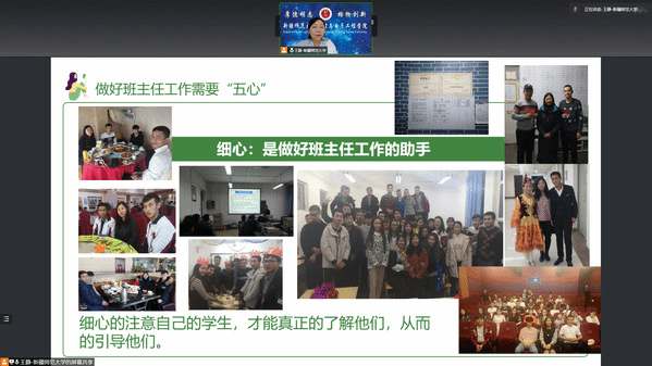 党委书记李莉做总结发言。她指出,在全面推动和落实立德树人的时代要求下,班主任应当努力做好班级运行的建设者、价值塑造的引领者、学生发展的同行者、自我赋能的学习者和立德树人的协同者。她希望班主任们要率先学习并践行社会主义核心价值观,保持家国情怀、关注时代和社会,以身作则、率先垂范,用自己的信念和德行吸引学生、感染学生、赢得学生。要严爱相济,润己泽人,用关爱滋润学生成长成才,既精通专业知识、做好“经师”,又涵养德行、成为“人师”。