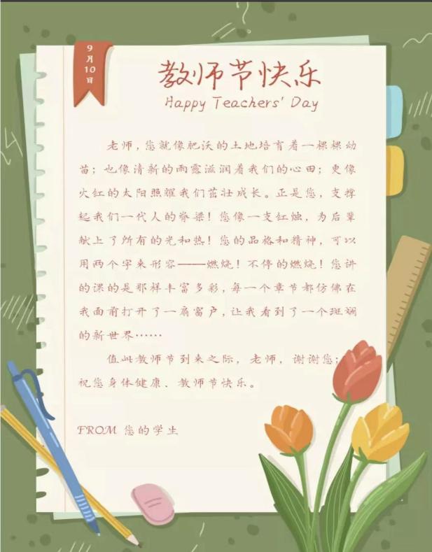 活动一经发出,受到很多同学的热情参与。有的同学用视频的方式表达了自己对恩师的感谢之情;有的同学制作了彩绘,以漫画的形式讲述了“他”和老师之间的故事;有的同学用优美的语言,给老师写了一封情书;也有同学发来了自己与老师的珍贵合影,传递了浓浓的师生情谊。