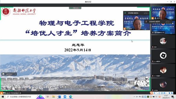 会议中,专业负责人王静和教研室主任秦晨从专业发展历程、专业概况、专业特色、专业建设成就、人才培养方案、课程设置、实践教育、毕业要求及就业去向等方面进行了详细介绍,为同学们指明了未来的奋斗目标和学习方向。帕尔哈提江·吐尔孙、赵忠华两位系主任分别对物电学院“培优人才生”培养方案作做了解读,鼓励新生们努力学习,在学院搭建的这个平台上成长成才。