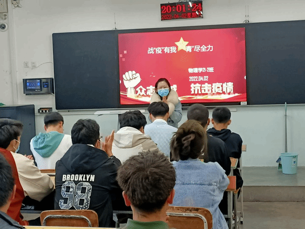 为进一步落实落细学校思想政治教育工作,积极响应学校“聚焦立德树人,建设一流师范”办学定位,通过“三进两联一交友”活动实现全员育人、全过程育人、全方位育人作用,深化师生交流、交往、交心全过程,形成家校协同育人合力。4月2日我院组织召开“战‘疫’有我,‘青’尽全力”主题班会,学院领导高度重视,全程参与,全体三进两联一交友联系老师深入联系班级参加班会。