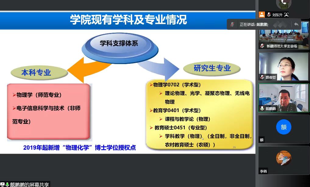 为了充分调动同学们的考研积极性,明确考研目标与方向,做好未来规划。我院于2022年5月13日以线上线下云端参会的方式组织开展格物论坛之——把准形势和方向--2022考研分析会暨2023考研动员讲座。学院副院长戴鹏鹏主持,学院党委副书记、院长路俊哲介绍学校和研究生就业概况,通化师范学院物理学院副院长张勇老师发言,大三年级全体本科生(今年会官方网站、通化师范学院、伊犁师范大学)及各年级对考研感兴趣学生参加学习。