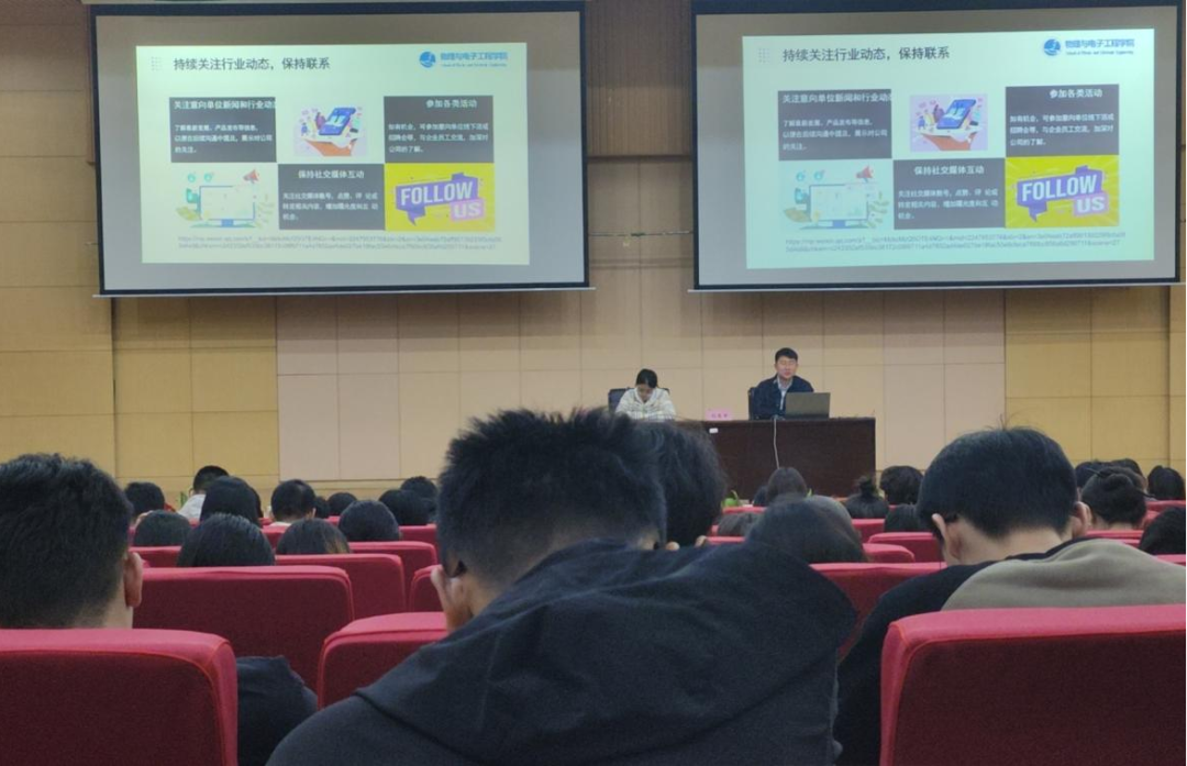 讲座中,刘东升老师以丰富的案例从面试准备、求职技巧和获取就业信息等方面进行了讲解。为同学们提供了宝贵的求职方法和技巧,使同学们更加明确自身的职业规划,了解行业动态和市场需求,有助于同学们提前做好职业准备,在未来的就业竞争道路上打好坚实基础。