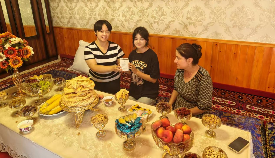 家访中,老师们向家长和学生积极宣传铸牢中华民族共同体意识和学校及学院的特色工作,通过宣传和讲解资助育人、学生活动、学业帮扶、“三强班级”“三好宿舍”创建等帮助家长深入了解学校相关情况,并向家长反馈了学生在校学习情况以及日常表现,做到家校信息互通,做好家校共育。同时还为家长和学生赠送了学院定制礼物:特色学校文创作品竹节杯和学院文创特色帆布包,表达了希望学生学业节节高升,不断取得进步的美好寓意,进一步拉近了家校距离和师生情感。