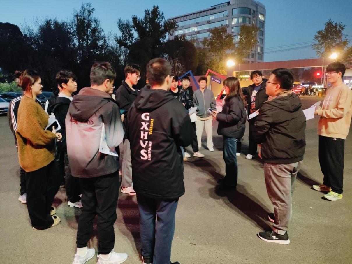 辅导员苑运强、周丽茹带领各班班长与劳动委员在负责区域现场熟悉情况