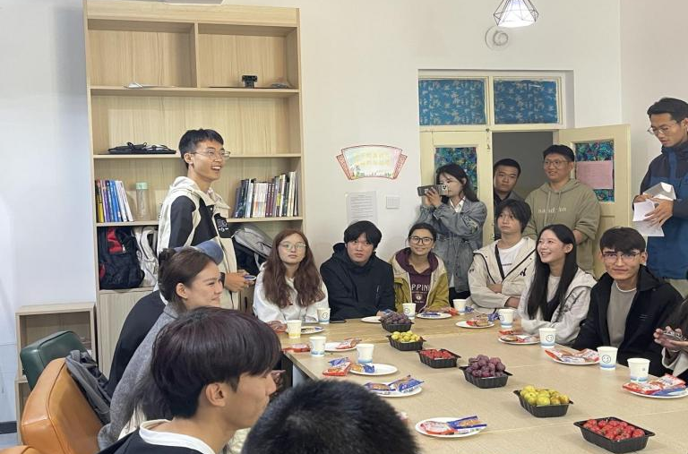 随后,来自祖国大江南北的同学们分享了自己家乡的中秋节习俗。来自广西的物理学2024-2班同学黄政云分享起了他家乡的中秋习俗:"在我们广西,中秋节除了赏月和吃月饼,还有一种特别的庆祝方式一'唱山歌'。在村里大家会登上山顶,唱起悠扬的山歌,表达对团圆的渴望和对美好生活的祝福"。来自新疆阿勒泰的电子信息科学与技术2024-7班昆舒阿克同学分享道:"在我们阿勒泰中秋节同样是一个重要的节日,家家户户都会准备丰盛的晚餐,邀请亲朋好友们来家做客,围坐在餐桌共同庆祝丰收和团圆"。同学们的分享让整个教室充满了浓厚的节日气氛。