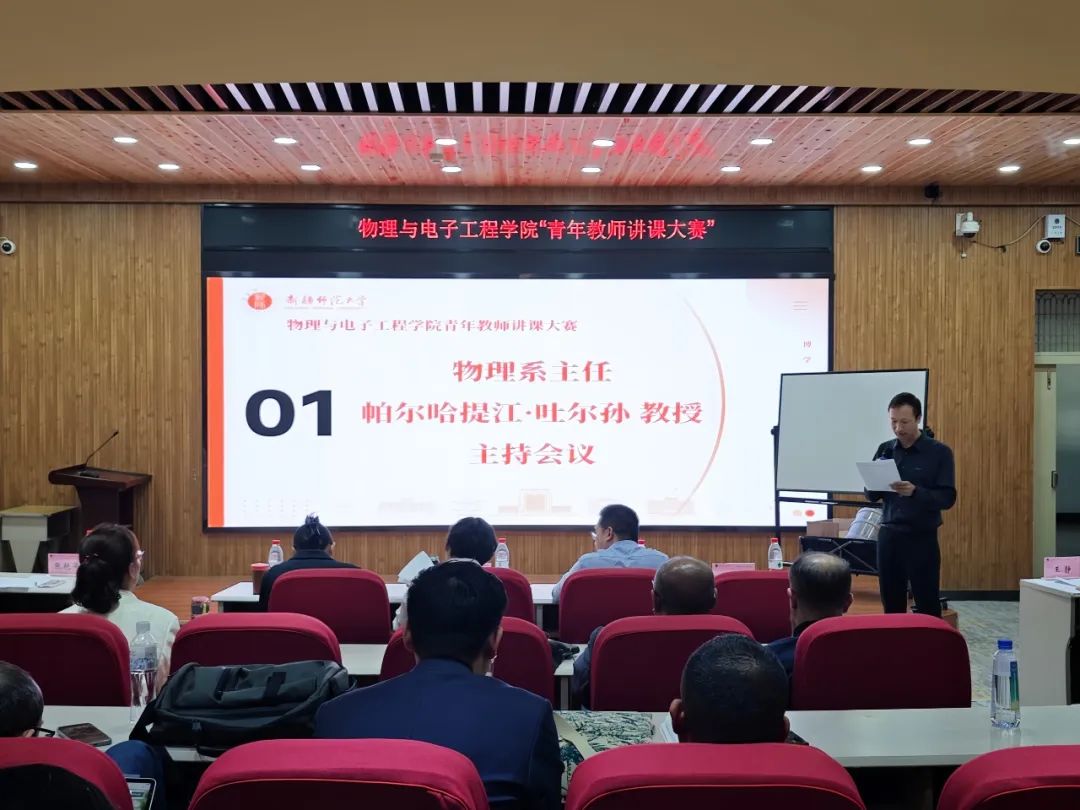 为进一步落实立德树人根本任务,引领青年教师不断更新教育理念、创新教学方法、优化教学过程,进一步巩固学院“三人行”青年教师导师制落实成效,着力建设高素质专业化教师队伍,提升教育教学质量,2024年5月8日下午,今年会jinnianhui在昆仑校区文史楼2楼议课厅举办了青年教师讲课比赛。比赛由物理系主任帕尔哈提江·吐尔孙教授主持,学院全体教师观摩比赛。