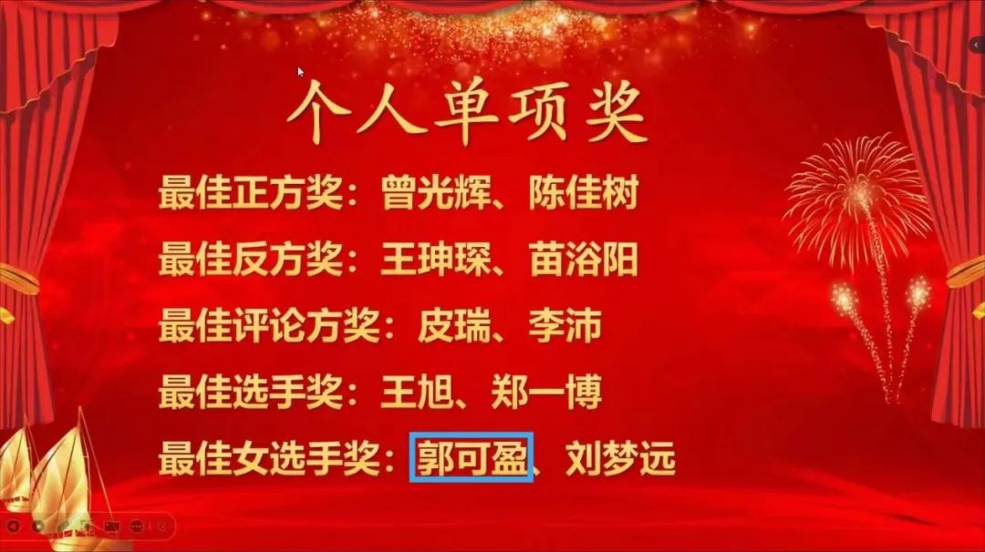 郭可盈同学荣获最佳女选手奖