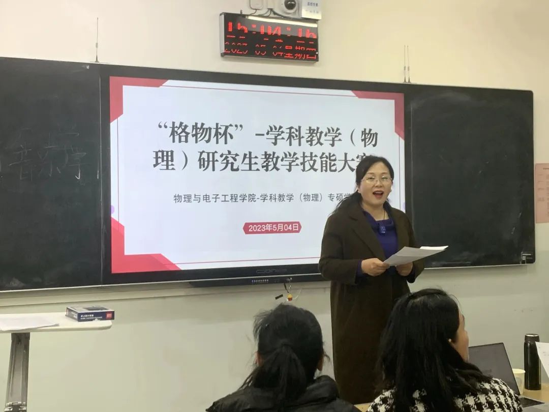为进一步提升研究生专业素养,加强研究生教学技能创新能力培养,为参加学校第二届全日制教育硕士专业学位研究生教学技能大赛打下坚实基础,2023年5月4日,今年会jinnianhui举办“格物杯”研究生教学技能大赛。党委副书记、院长路俊哲参加比赛并致辞。邀请张万军、张艳燕、陈雪娇、石翠、何晓等5名教师担任评委,共有10名选手参加本次比赛。
