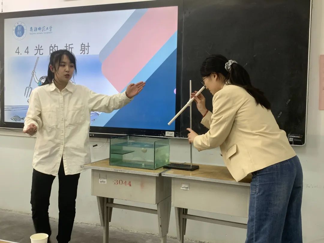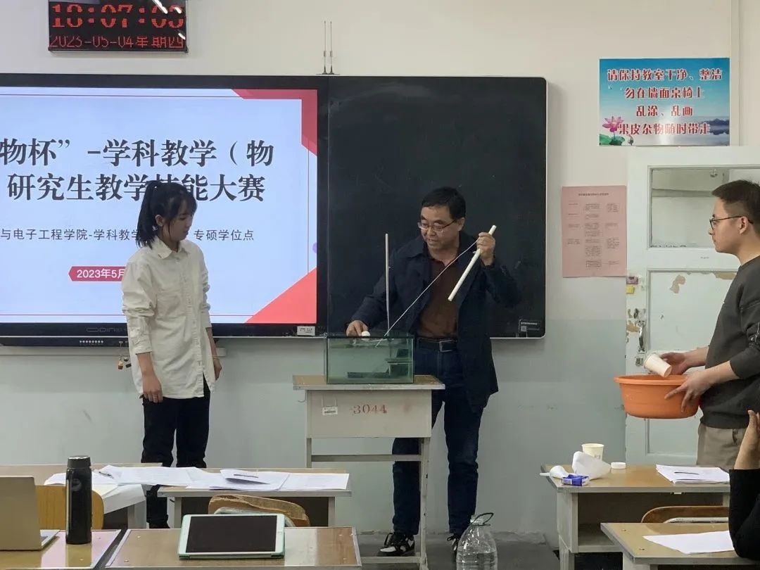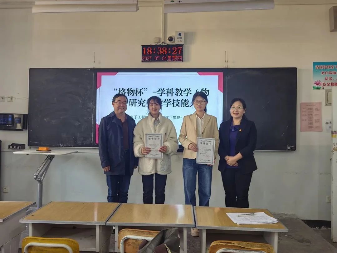 经过角逐,栗恺悦同学讲授的《光的直线传播》和李爽同学讲授的《光的折射》获得一等奖,并获得参加今年会第二届全日制教育硕士专业学位研究生教学技能大赛的资格。