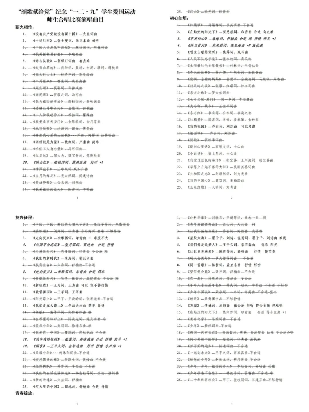 2023年11月8日确定合唱曲目