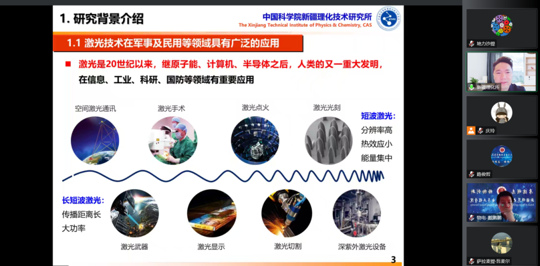 张敏研究员以“光电功能晶体结构设计及器件研究”为主题,介绍了光电功能晶体结构设计及器件研究背景,激光产生原理及分类,非线性光学的发展历程、制备方法、工作原理和未来前景。