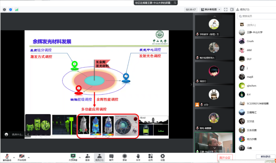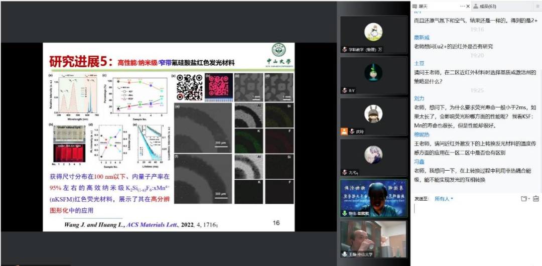 王静教授以“微纳米发光材料”为主题,介绍当前发光领域的前沿热点,结合当前不同光功能应用领域存在的关键技术瓶颈,介绍了近年来本课题组的相关研究进展。