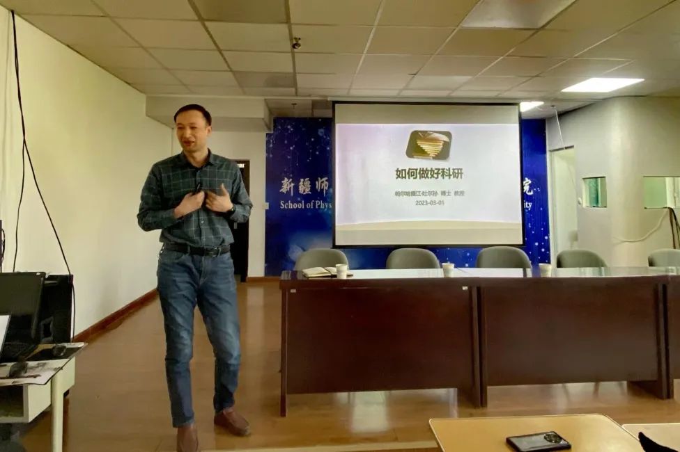 导师代表、物理系主任帕尔哈提江·吐尔孙进行分享