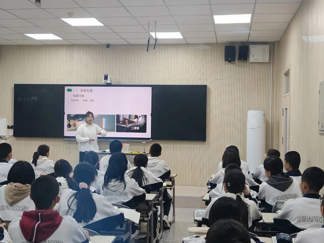 第二节课由培优班实习生2022-2班陈正坪授课,讲解的内容是八年级上册物理第四章第五节光的色散,通过课堂讲解让学生了解光的色散及色光的混合规律,通过介绍不可见光的特性及应用,拓展了学生的知识面。
